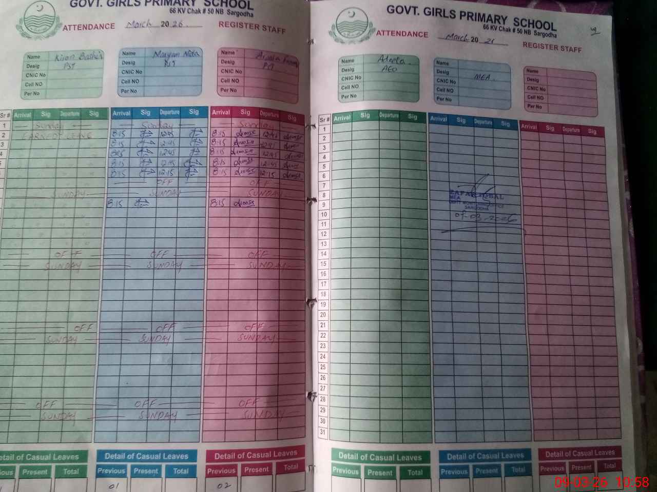 | Name: Ar**** Fa**** Designation: (School Headmaster's/Headmistress's) PST Phone/Cell Number: 03**** |