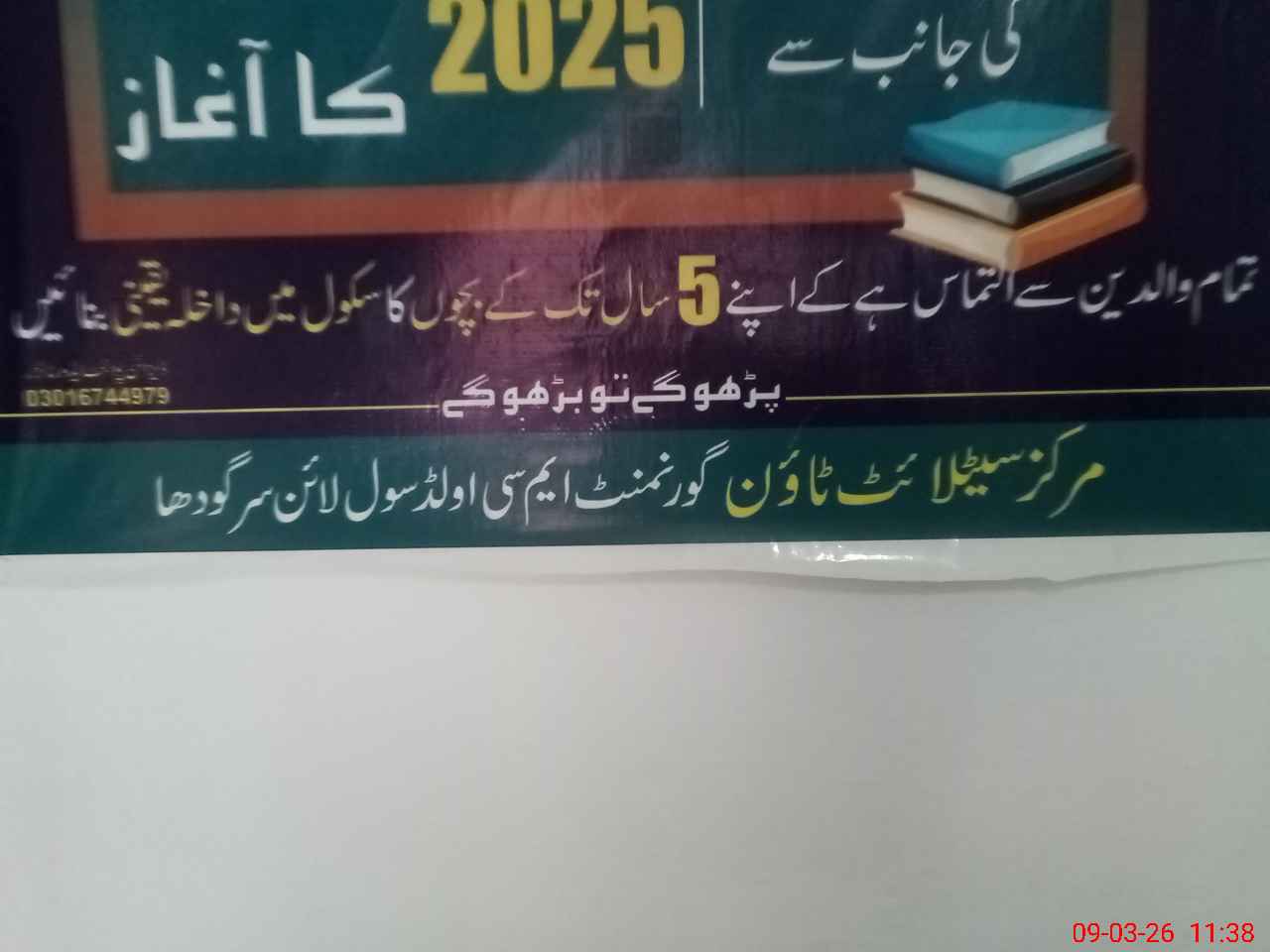 | District: SARGODHA | Tehsil: SARGODHA | Markaz: SATELLITE TOWN - MALE | Level: Primary | |