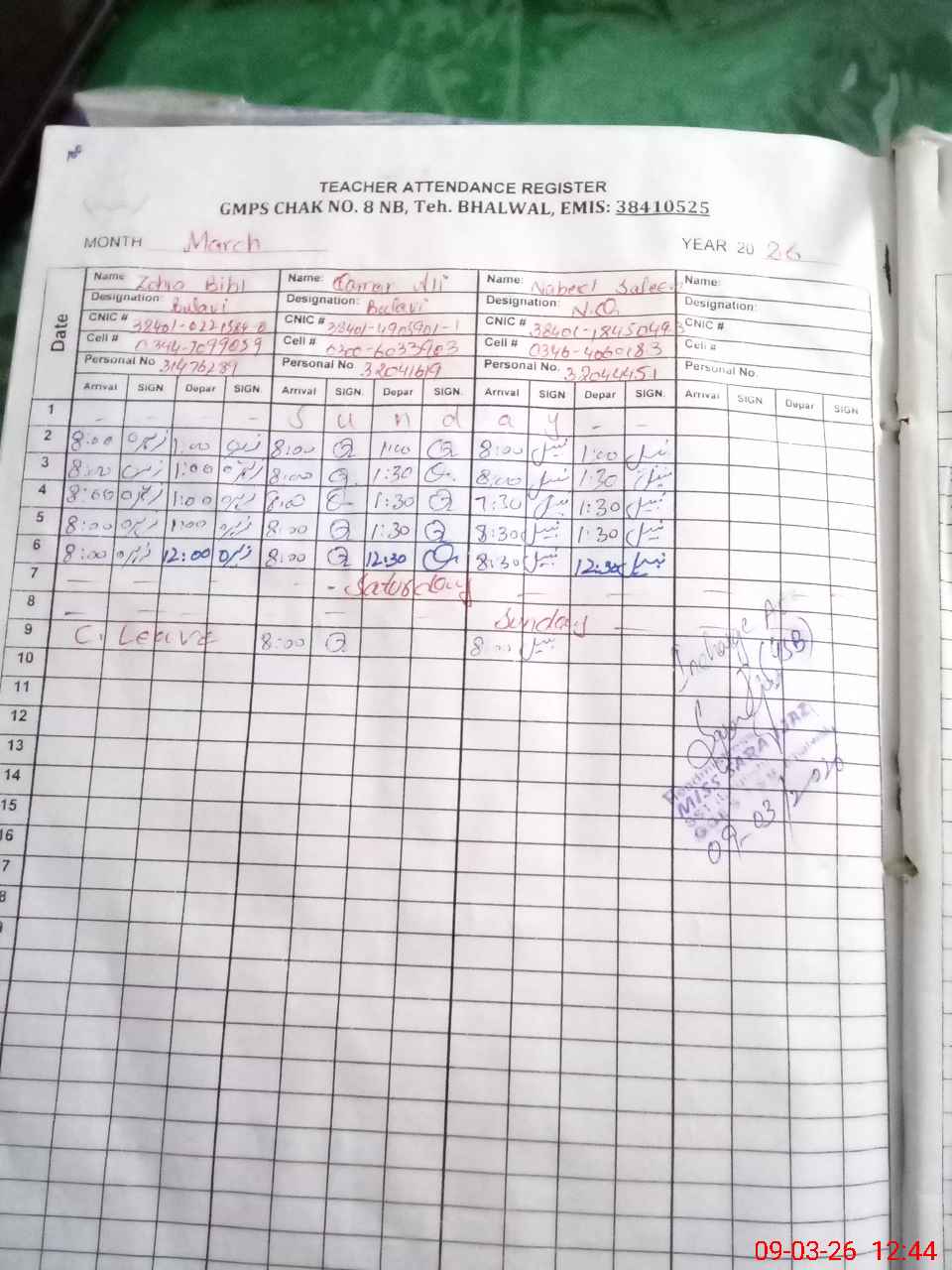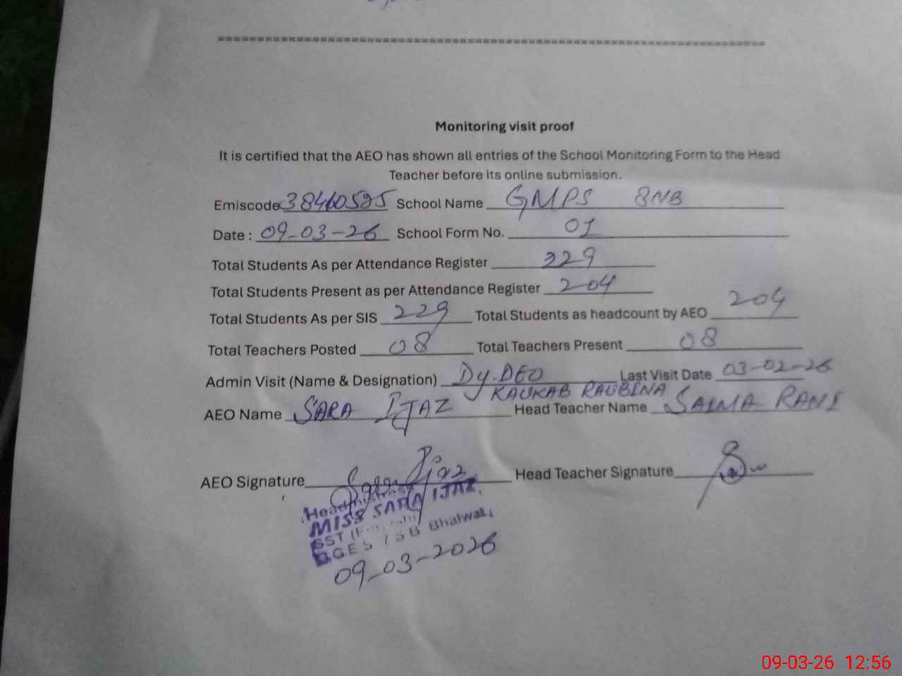 | EMIS Code: 38410525 | Name of School: GMPS CHAK NO.8 NB BHALWAL CITY | |||