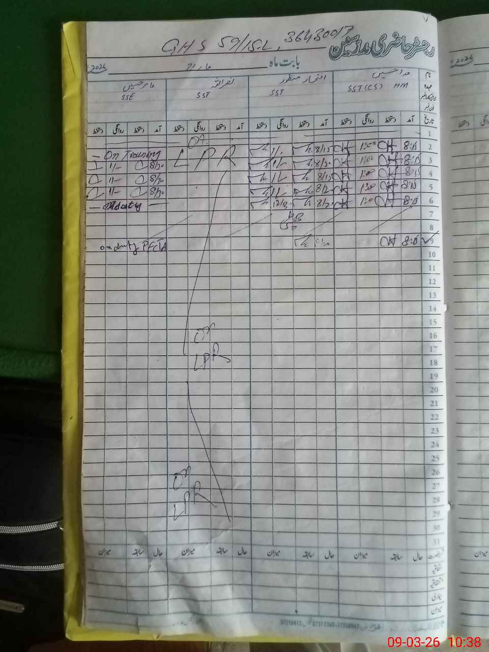 | 36**** | Ma**** As**** | PST Arts | Regular | 1 | 0 | 0 | 0 | 0 | 0 | 0 | 0 | 1 | Exam Duty |