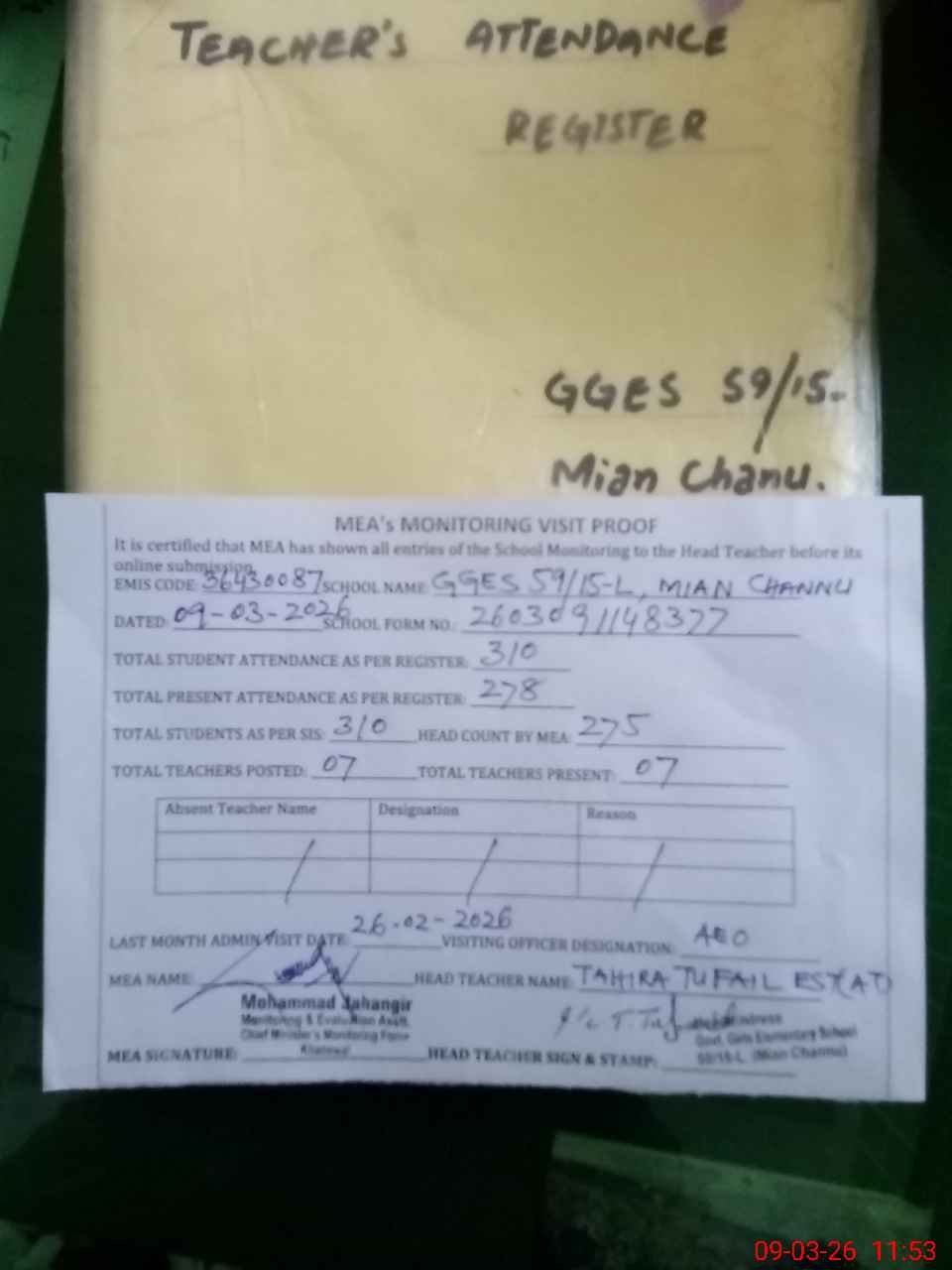 | EMIS Code: 36430087 | Name of School: GGES 59/15-L, MIAN CHANNU | |||