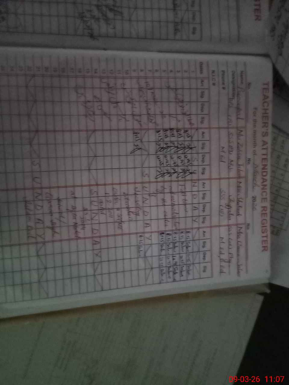 | 36**** | Fa**** Ak**** | SST Science | Regular | 2 | 0 | 0 | 0 | 0 | 0 | 0 | 0 | 2 | Exam Duty |