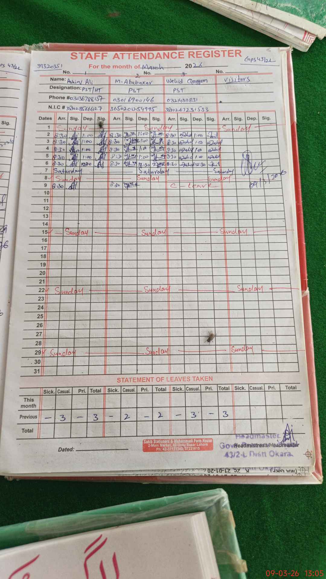 | Name: As**** Al**** Designation: (School Headmaster's/Headmistress's) PST Phone/Cell Number: 03**** |