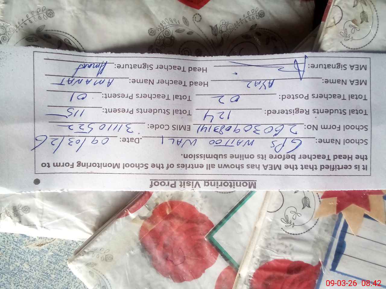 | EMIS Code: 31110522 | Name of School: GPS WATTWAN WALI EAST | |||