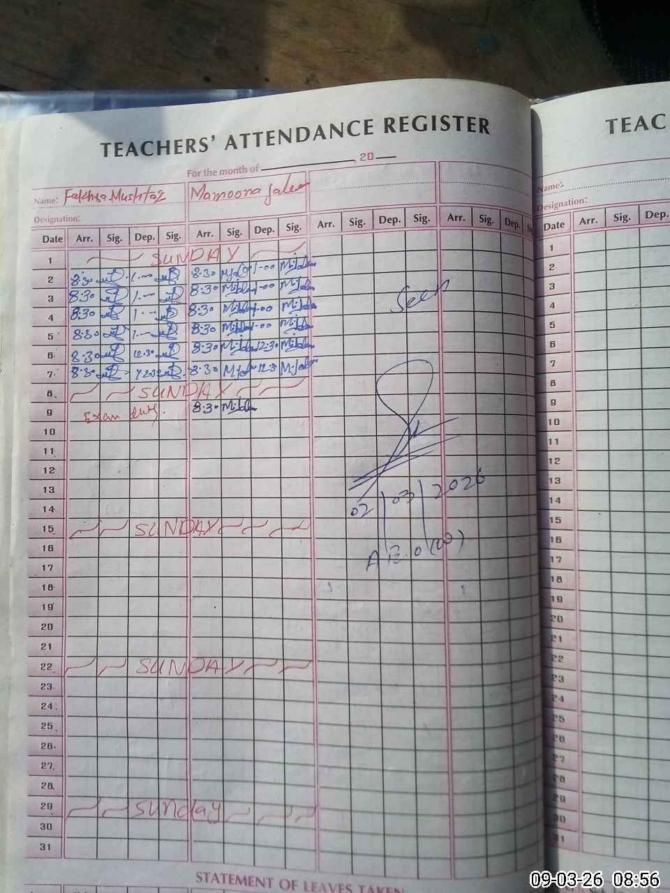 | 36**** | Fa**** Mu**** | PST Arts | Regular | 0 | 0 | 0 | 0 | 0 | 0 | 0 | 0 | 0 | Exam Duty |