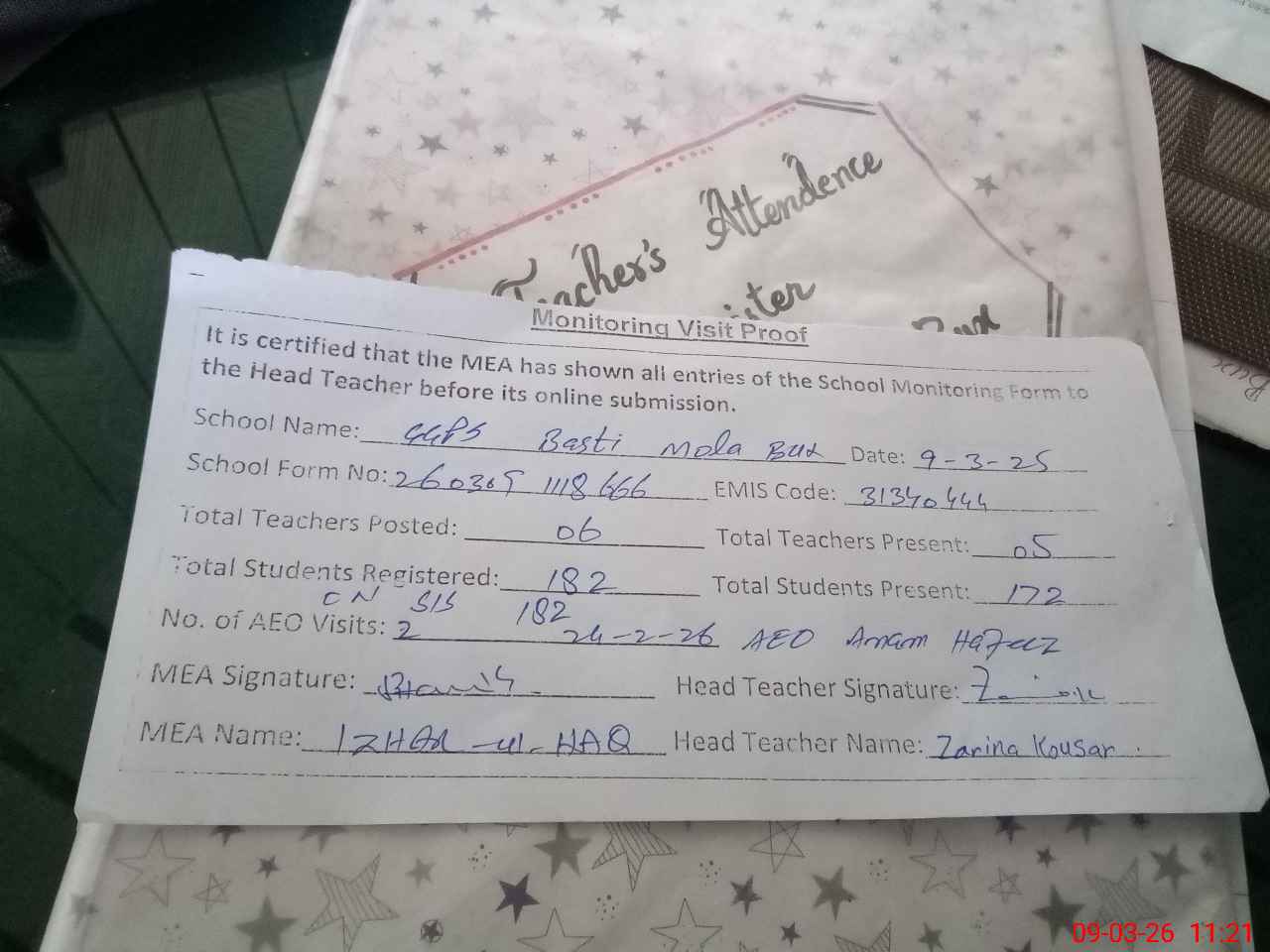 | EMIS Code: 31340444 | Name of School: GGPS BASTI MOLA BUKHSH | |||