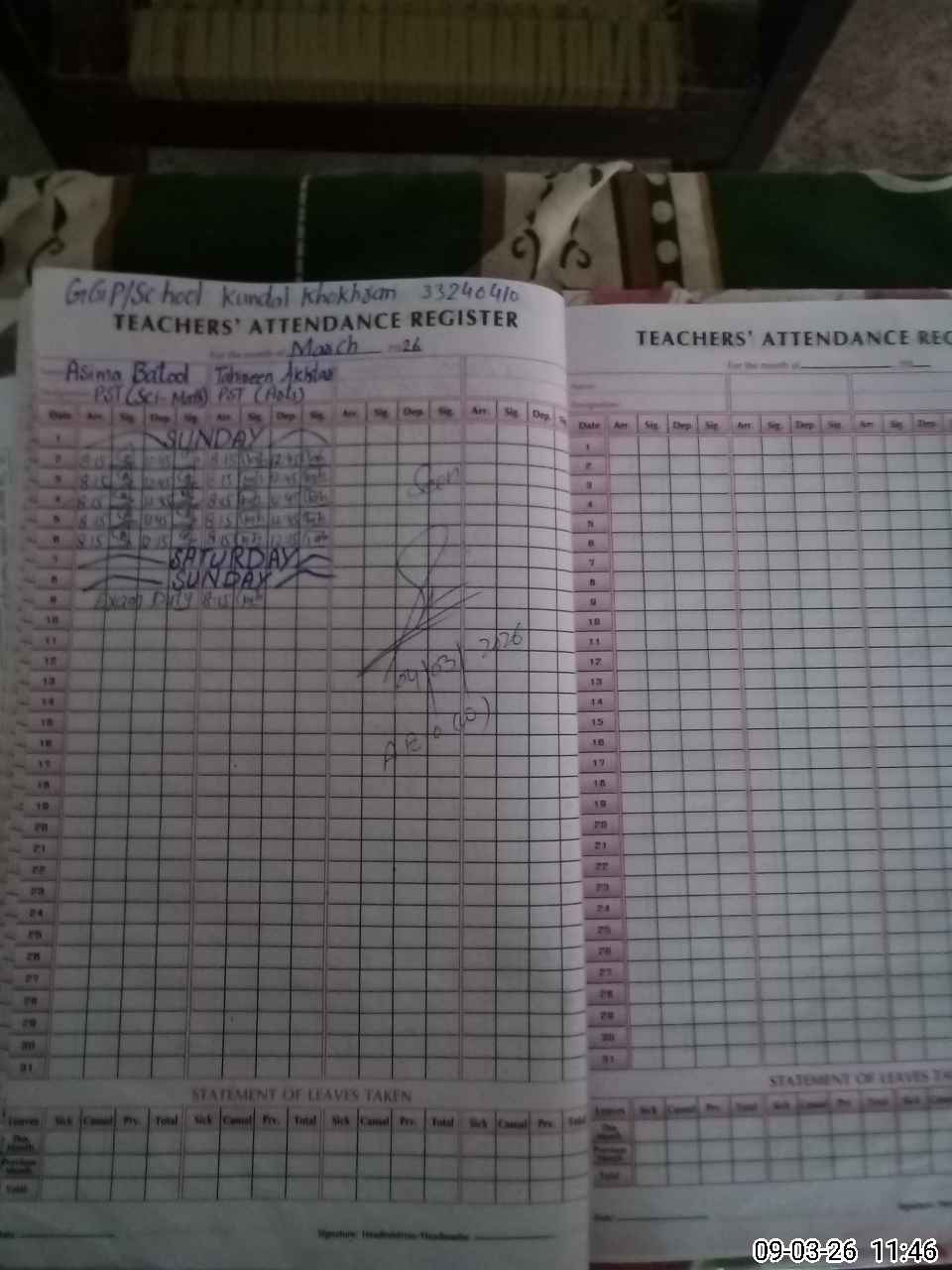 | 33**** | As**** Ba**** | PST Science/Maths | Regular | 0 | 0 | 0 | 0 | 0 | 0 | 0 | 0 | 0 | Absent (Un-Authorized) |