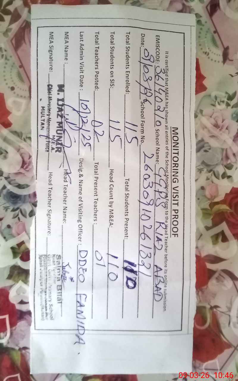 | EMIS Code: 36140210 | Name of School: GGPS RIAZ ABAD BASTI ILYAS WALA | |||