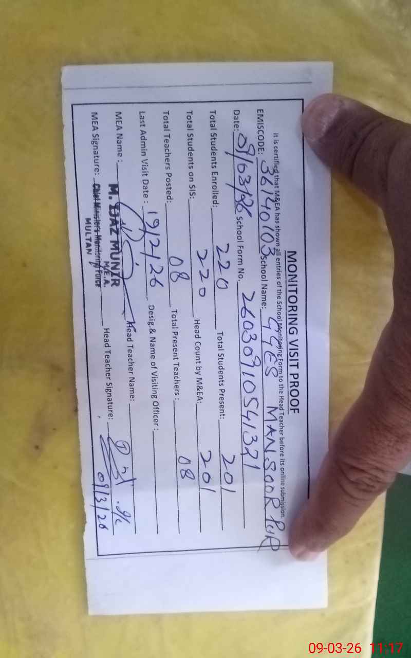 | EMIS Code: 36140103 | Name of School: GES MANSOOR PUR MOUZA MANSOOR PUR TAH. JALALPUR PIRWALA | |||