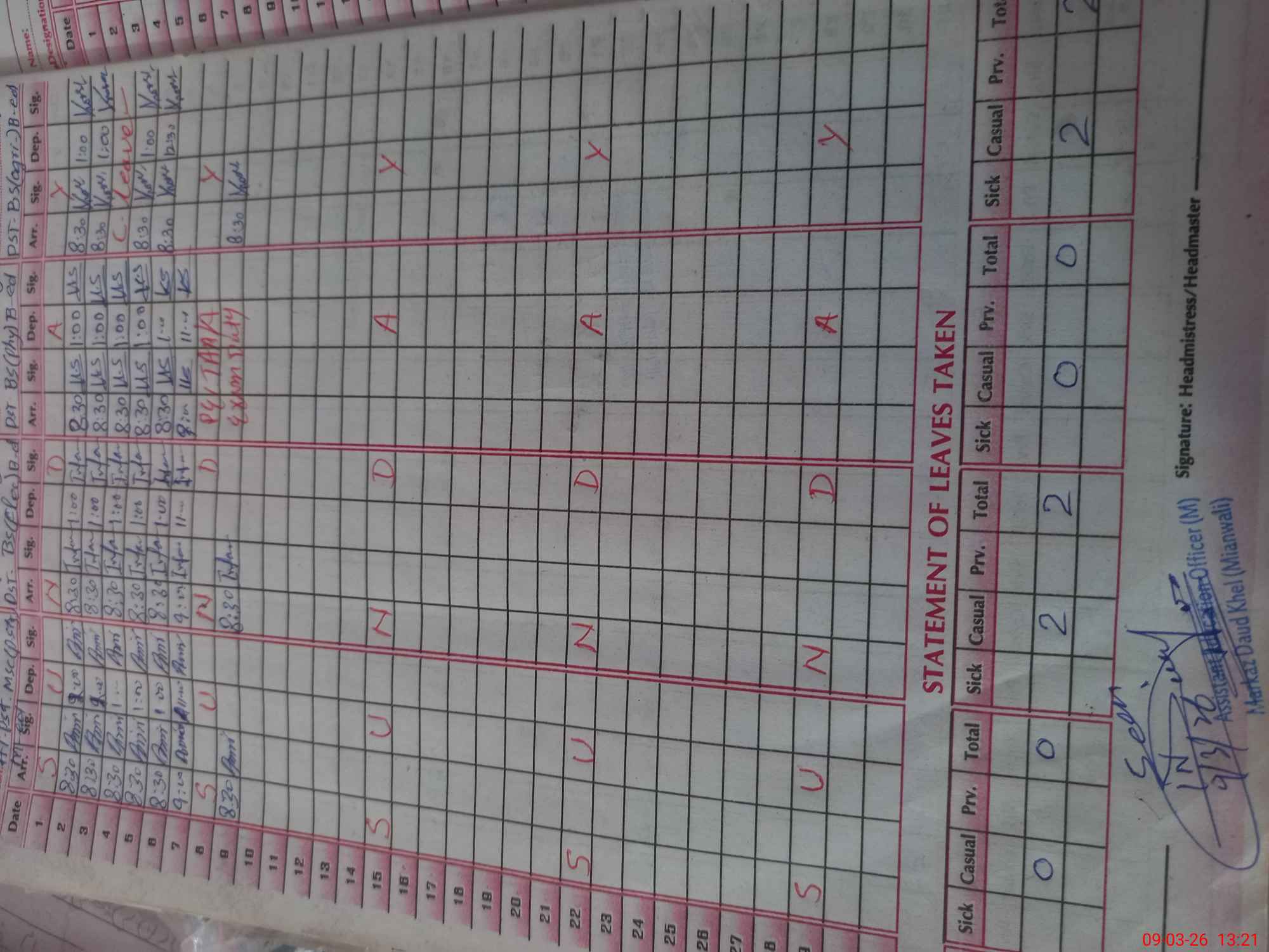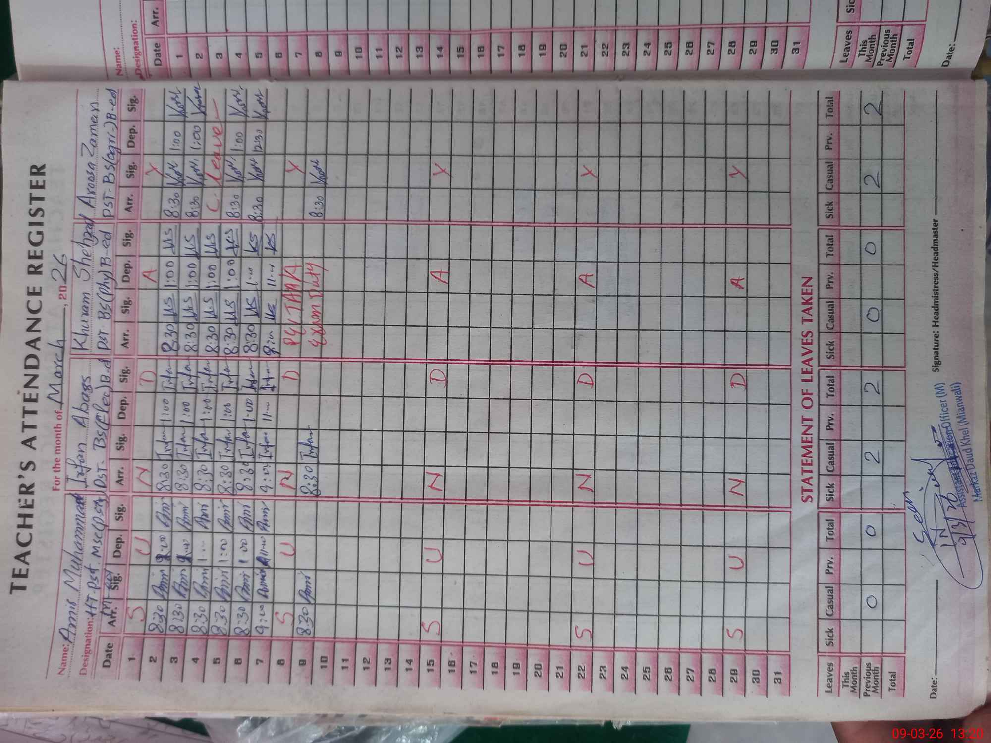 | Name: AM**** MU**** Designation: (School Headmaster's/Headmistress's) PST Phone/Cell Number: 03**** |