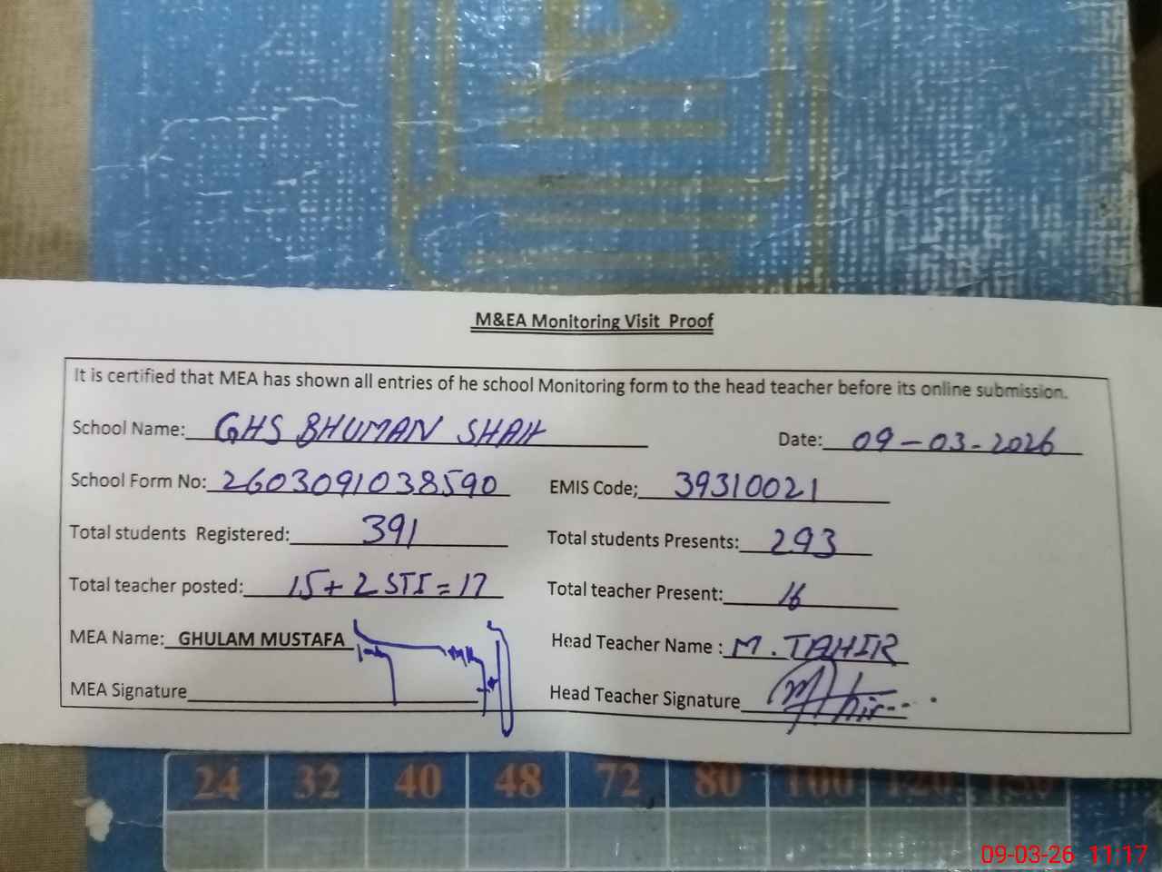 | EMIS Code: 39310021 | Name of School: GHS BHUMAN SHAH | |||
