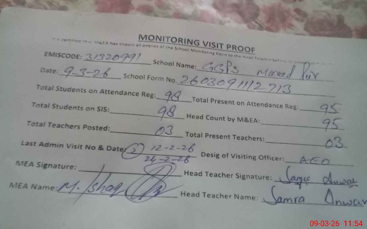 | EMIS Code: 31320991 | Name of School: GGPS MURAD PUR SIAL | |||