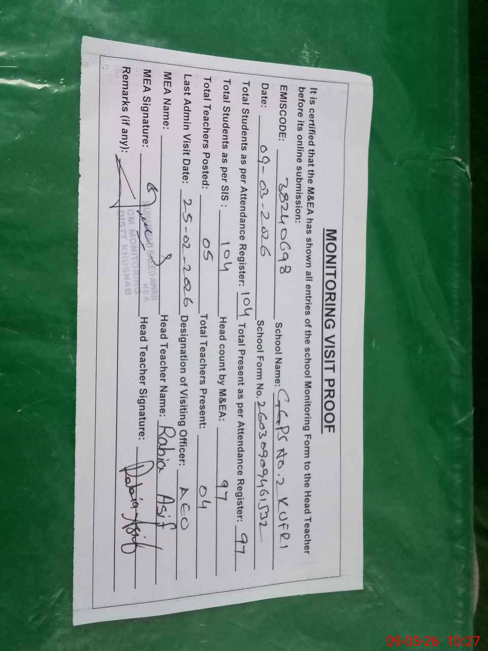 | Remarks (Use Separate Page if Required): water source is not available Students on SIS QTY 104 Last admin visit On 25 February 2026 by AEO | |||||