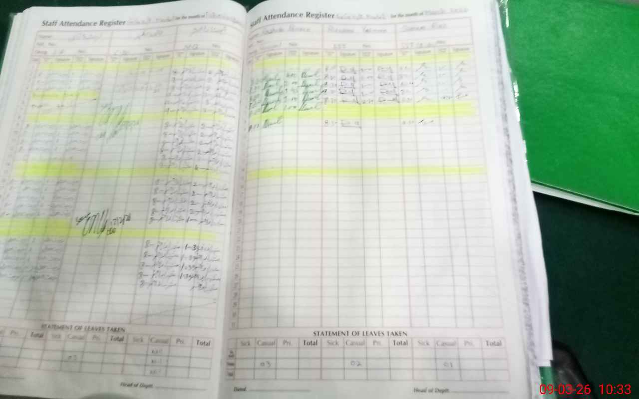 | 31**** | Am**** Al**** | PST Science/Maths | Regular | 0 | 0 | 0 | 0 | 0 | 0 | 0 | 0 | 0 | Exam Duty |
