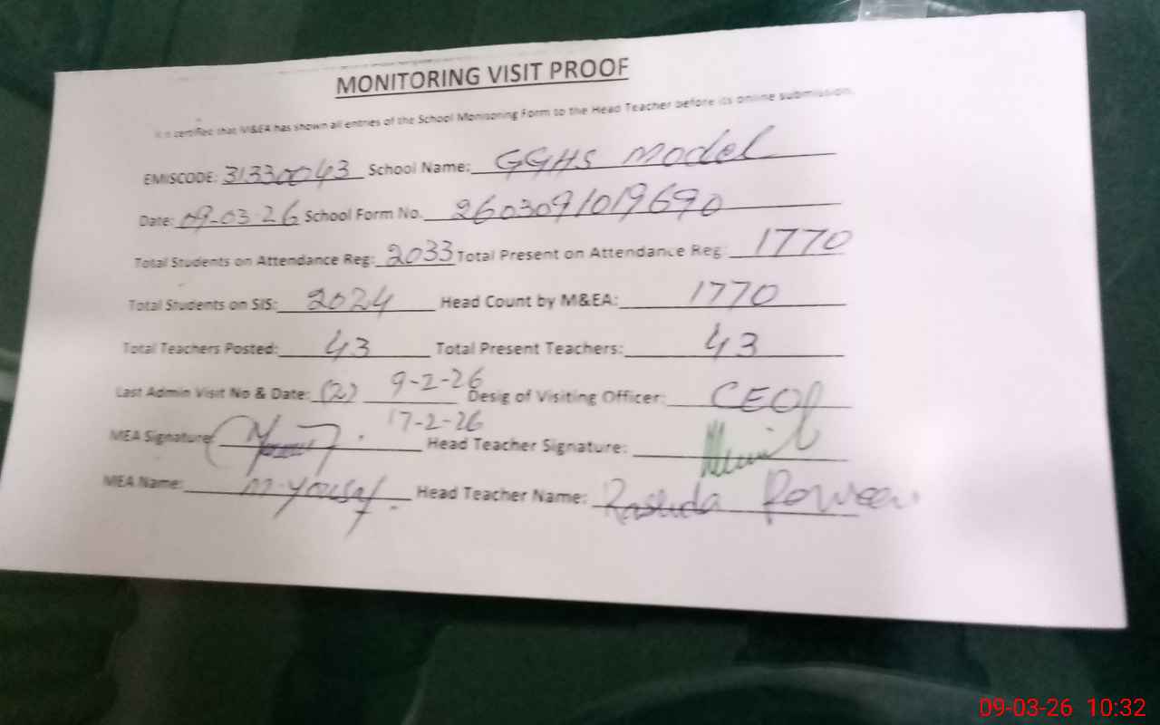 | EMIS Code: 31330043 | Name of School: GGHS MODEL | |||