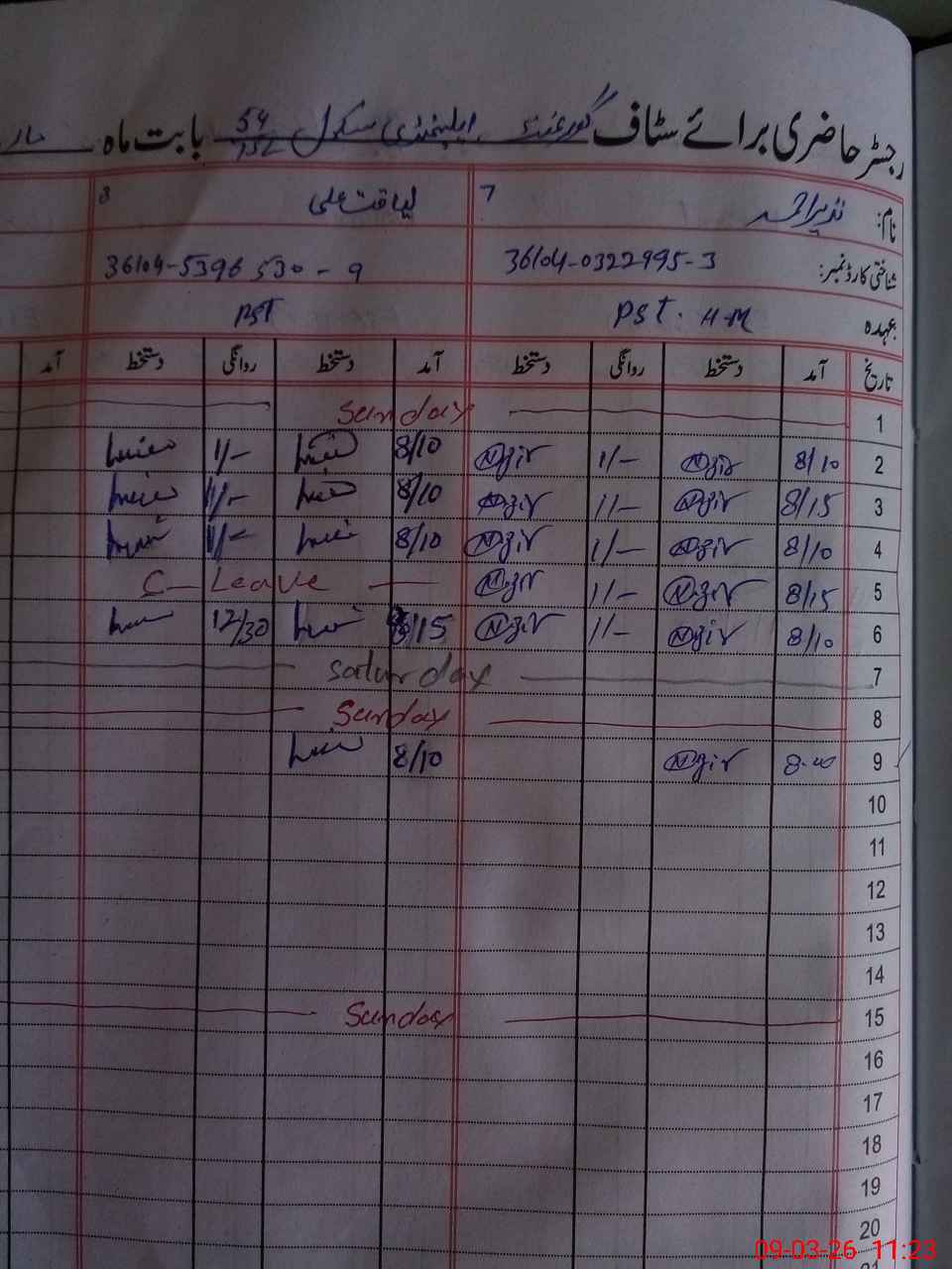 | CNIC | Full Name | Designation | R/C | Absence During Last Calender Month |