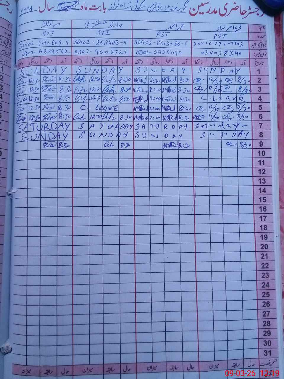 | Name: MAm**** Ni**** Designation: (School Headmaster's/Headmistress's) PST Phone/Cell Number: 03**** |
