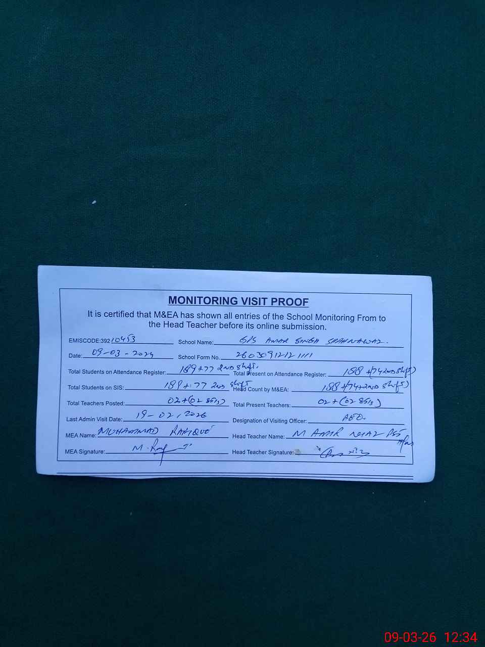 | EMIS Code: 39210453 | Name of School: GPS AMAR SINGH P/O 26/S.P PAKPATTAN | |||