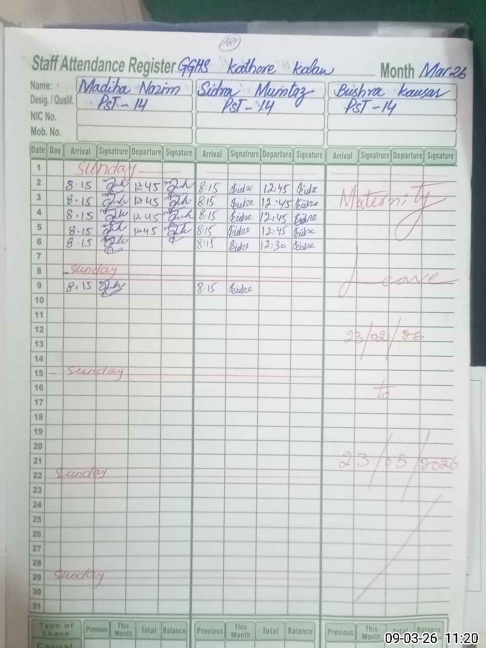 | 34**** | Bu**** Ko**** | PST (Science-Math) | Regular | 0 | 0 | 0 | 0 | 0 | 0 | 0 | 0 | 0 | Absent (Un-Authorized) |