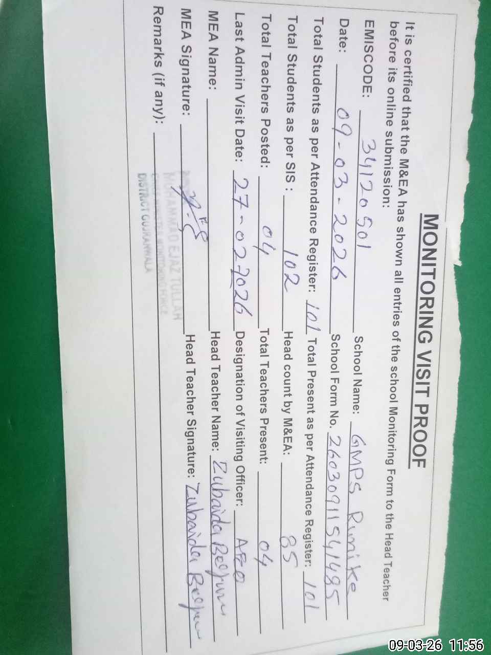 | Certified that this School was Inspected by the Undersigned MEA/DMO Today and the Information Stated Above is as Per Record. | |||||