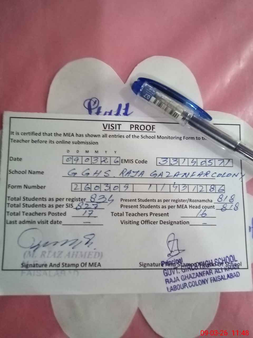 | EMIS Code: 33140571 | Name of School: GGHS RAJA GAZANFAR COLONY FAISALABAD | |||