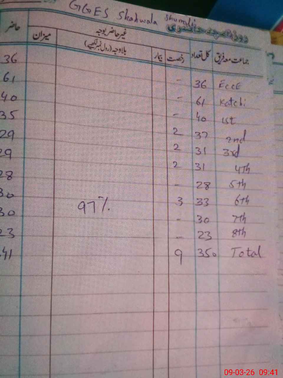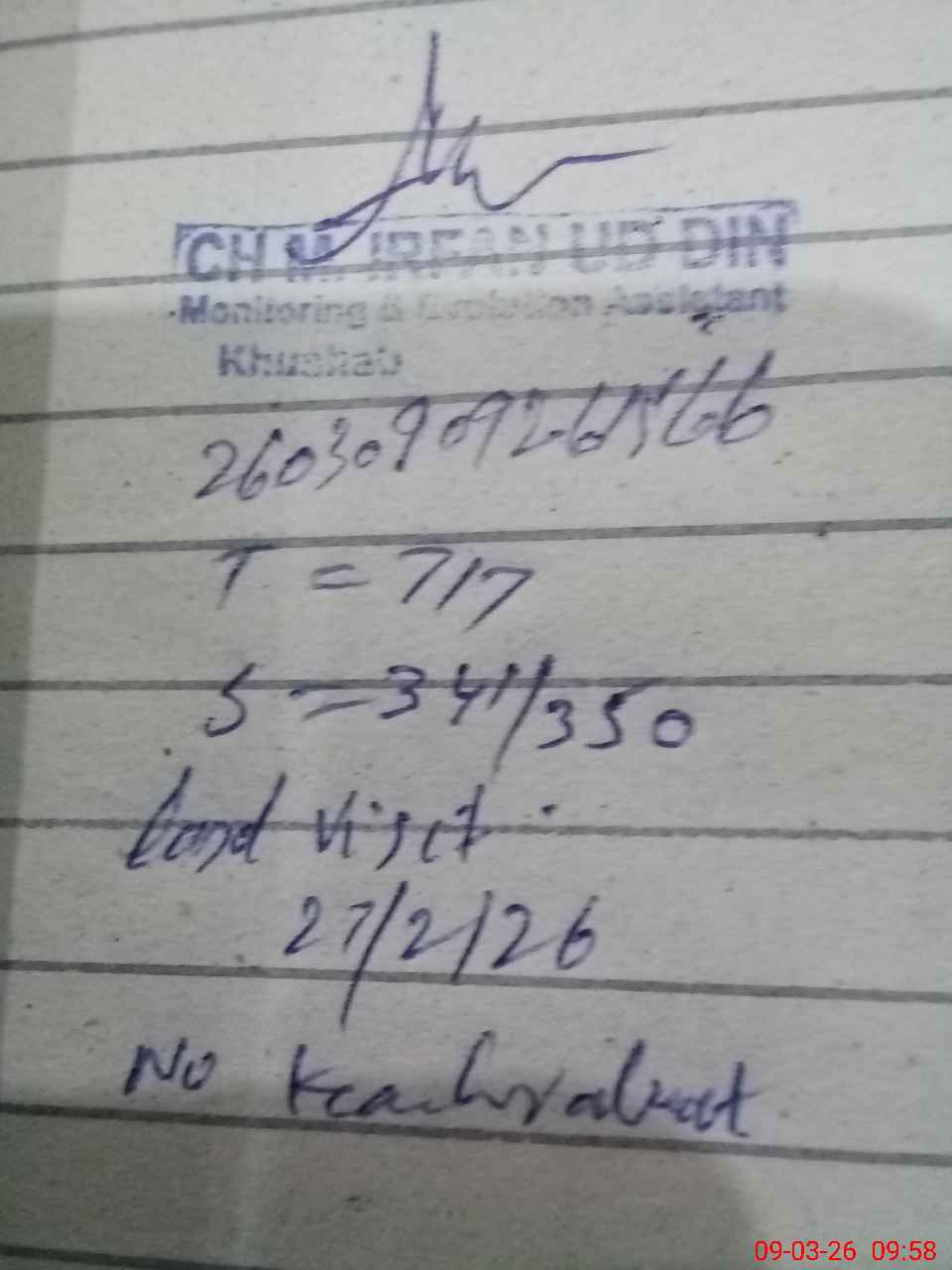 | Remarks (Use Separate Page if Required): gges shah wala shumali student on sis 350 student on register 350 head count 341 no teacher absent last visit 27/2/26 teacher ng staff required still dent furniture required class room required washroom required bulavi and sc required | |||||