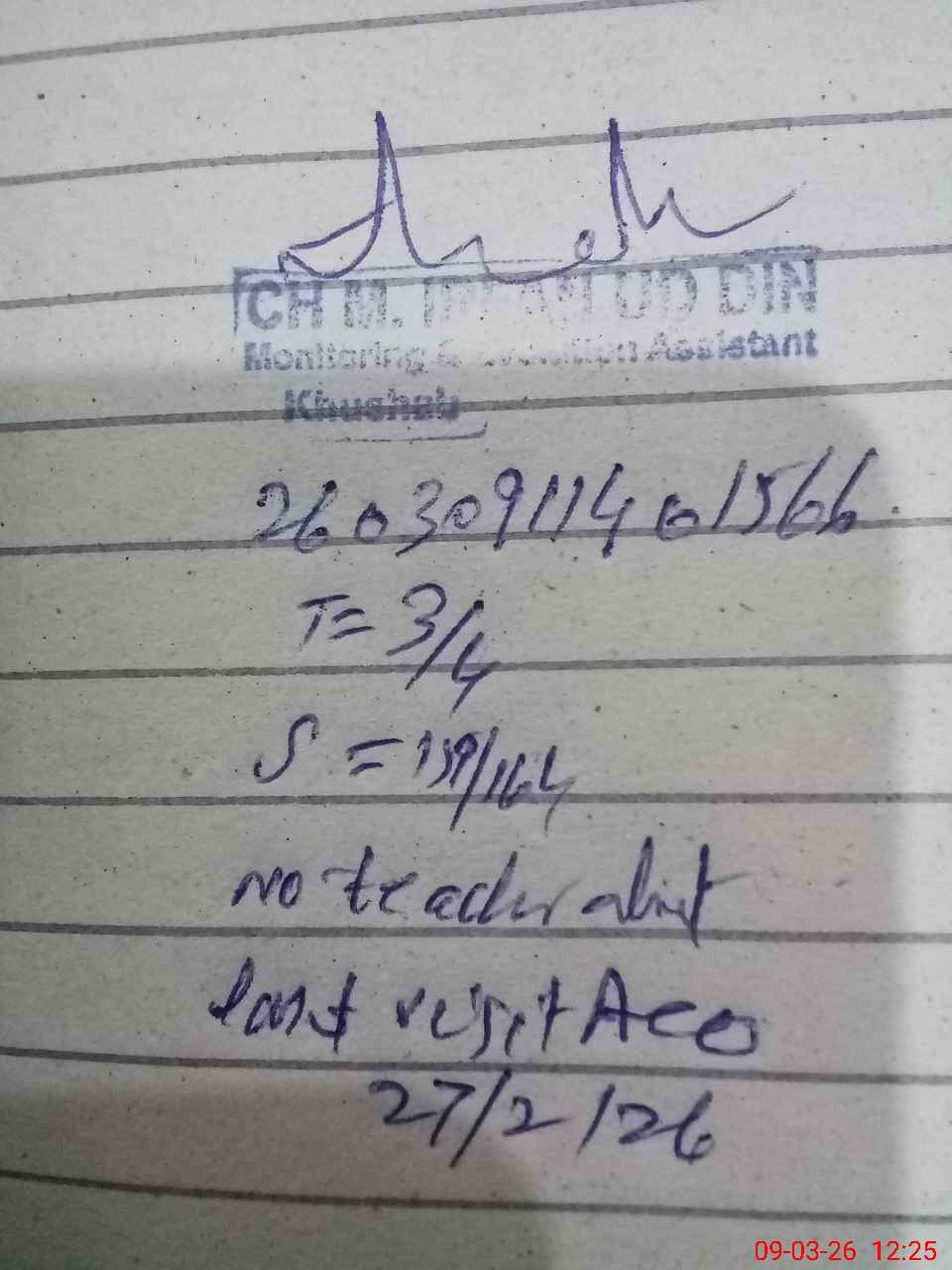 | Remarks (Use Separate Page if Required): gps titian wali student on sis 164 student on register 164 head count 159 no teacher absent one on leave last visit aeo 27/2/26 classroom required washroom required security guard required | |||||