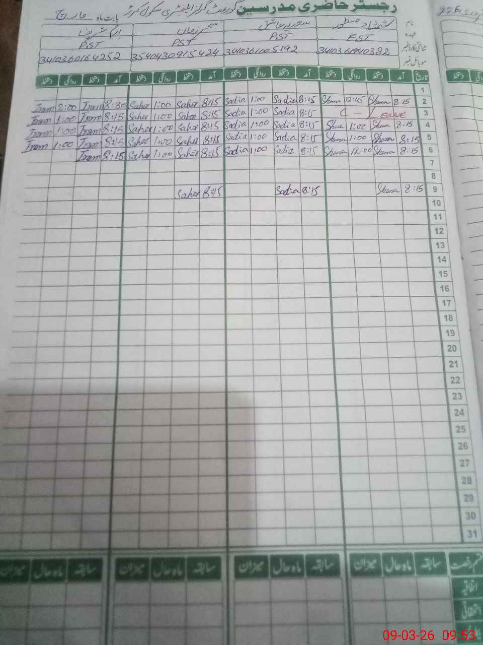 | Name: SH**** MA**** Designation: (School Headmaster's/Headmistress's) EST ENGLISH Phone/Cell Number: 03**** |