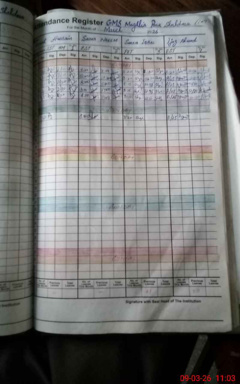 | 35**** | Af**** Ka**** | PST Arts | Regular | 0 | 0 | 0 | 0 | 0 | 0 | 0 | 0 | 0 | Exam Duty |