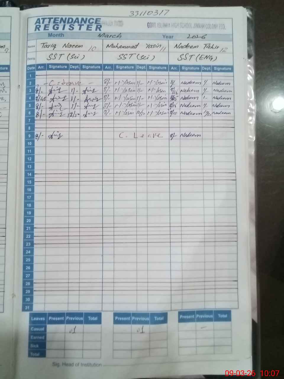 | 33**** | Mu**** Ya**** | SST Science | Regular | 2 | 0 | 0 | 0 | 0 | 0 | 0 | 0 | 2 | Casual |