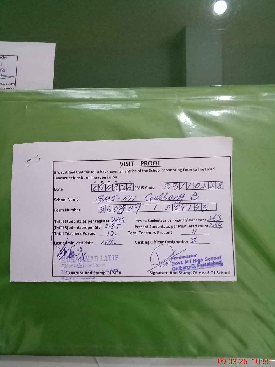 | EMIS Code: 33110228 | Name of School: GHS M I GULBERG B FSD | |||