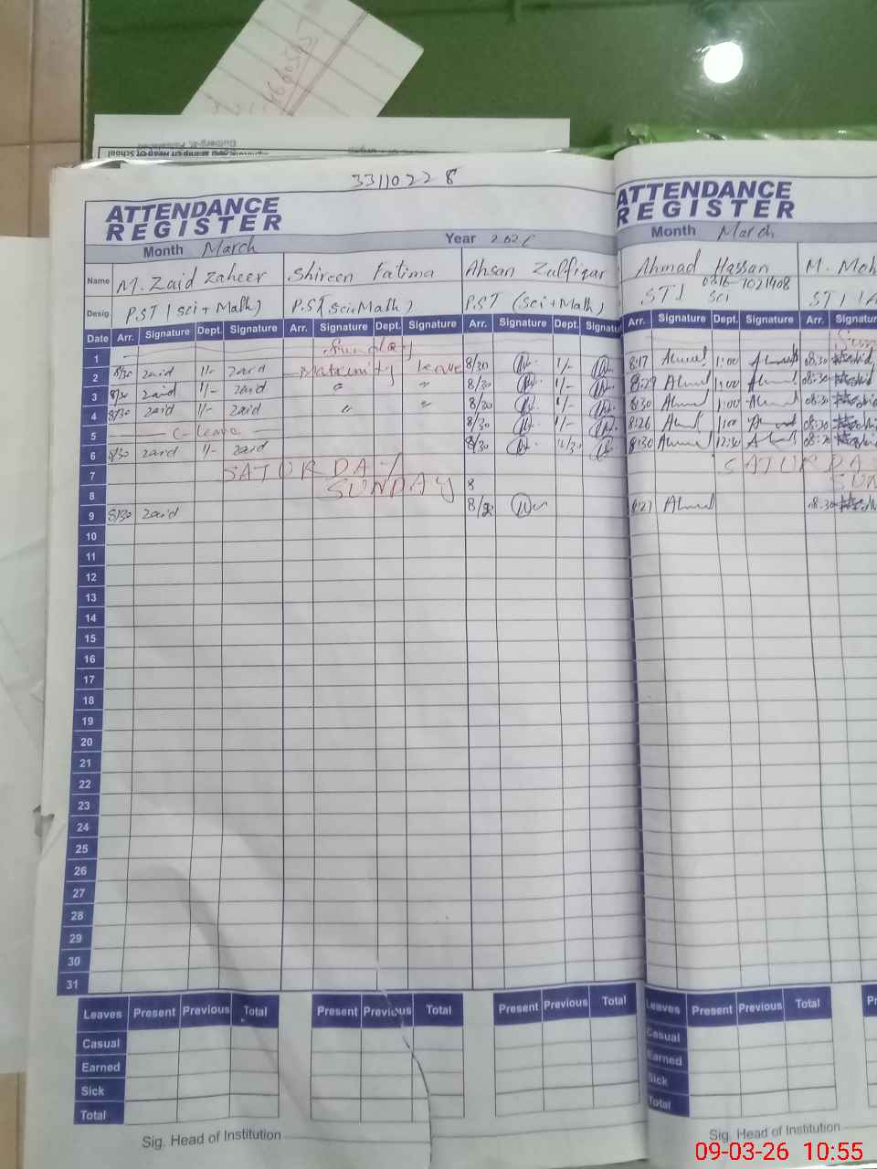 | 33**** | Mu**** Am**** | PST Arts | Regular | 0 | 0 | 0 | 0 | 0 | 0 | 0 | 0 | 0 | Exam Duty |
