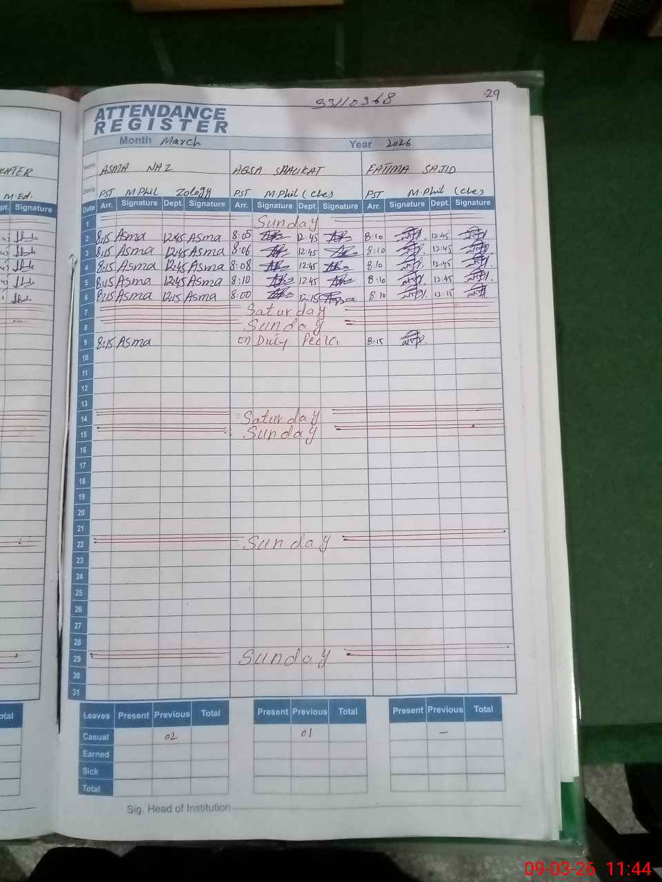 | 33**** | Aq**** Ja**** | EST Science | Regular | 0 | 0 | 0 | 0 | 0 | 0 | 0 | 0 | 0 | Exam Duty |