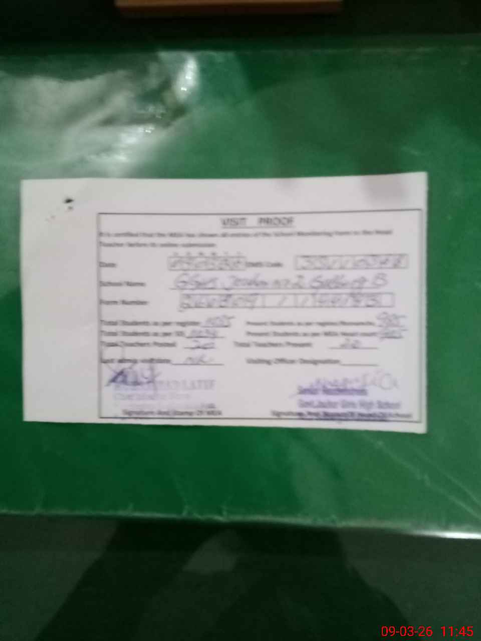 | Name: SH**** AN**** Designation: (School Headmaster's/Headmistress's) SNR H M Phone/Cell Number: 03**** |