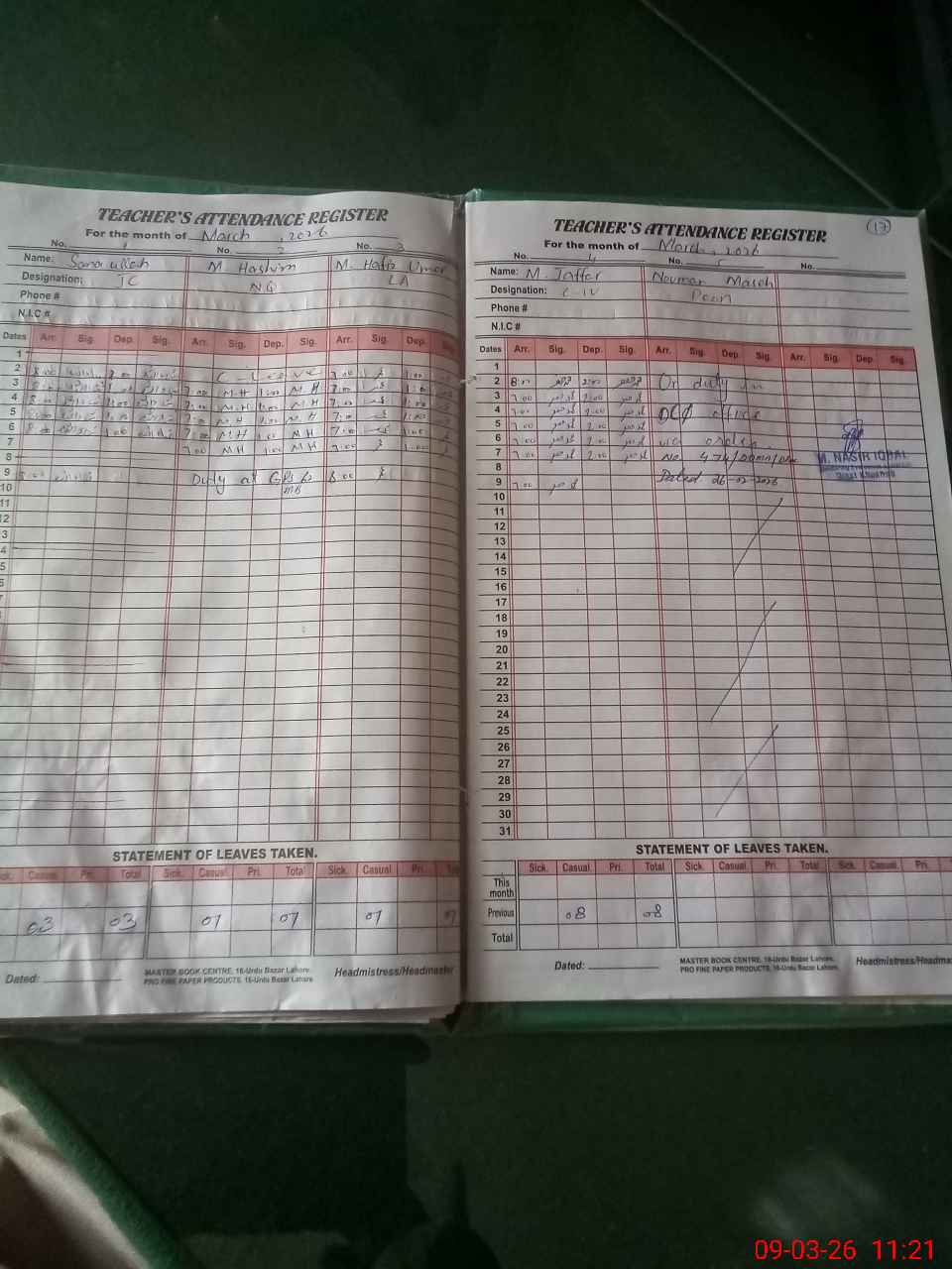 | Remarks (Use Separate Page if Required): No teacher is absent | |||||