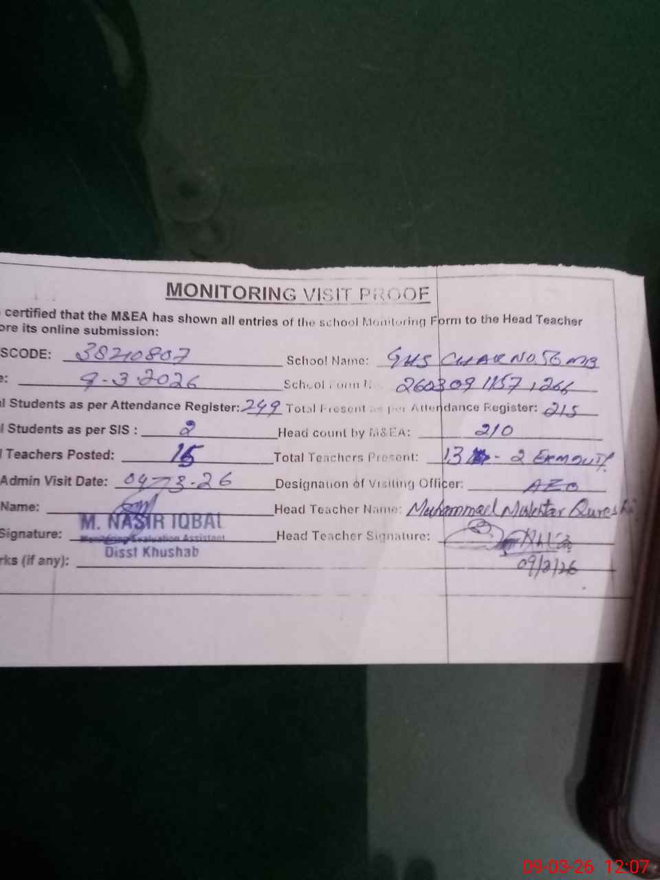 | EMIS Code: 38210807 | Name of School: GHS CHAK NO. 56 MB | |||
