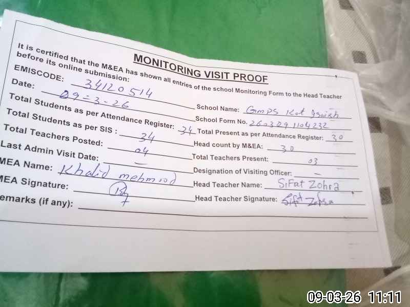 | EMIS Code: 34120514 | Name of School: GMPS KOT ISAISH | |||