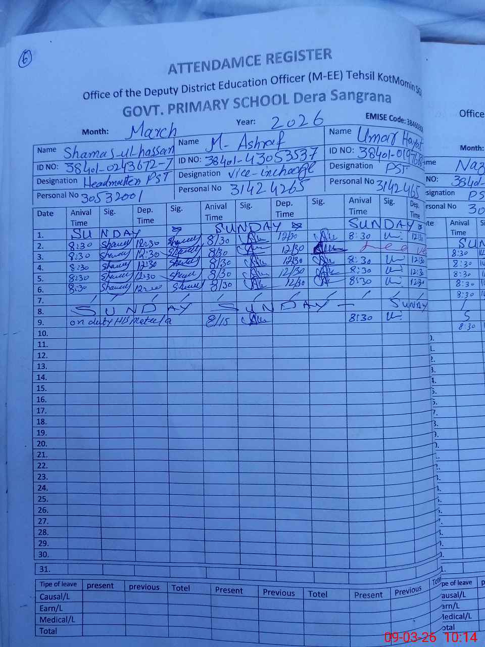 | 38**** | Sh**** | PST Arts | Regular | 0 | 0 | 0 | 0 | 0 | 0 | 0 | 0 | 0 | Exam Duty |