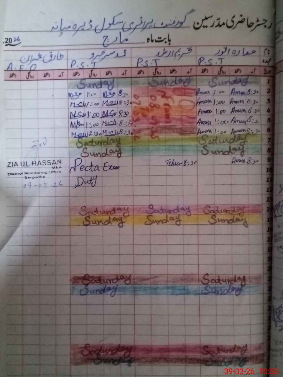 | 38**** | Mu**** Su**** | PST Arts | Regular | 0 | 0 | 0 | 0 | 0 | 0 | 0 | 0 | 0 | Exam Duty |