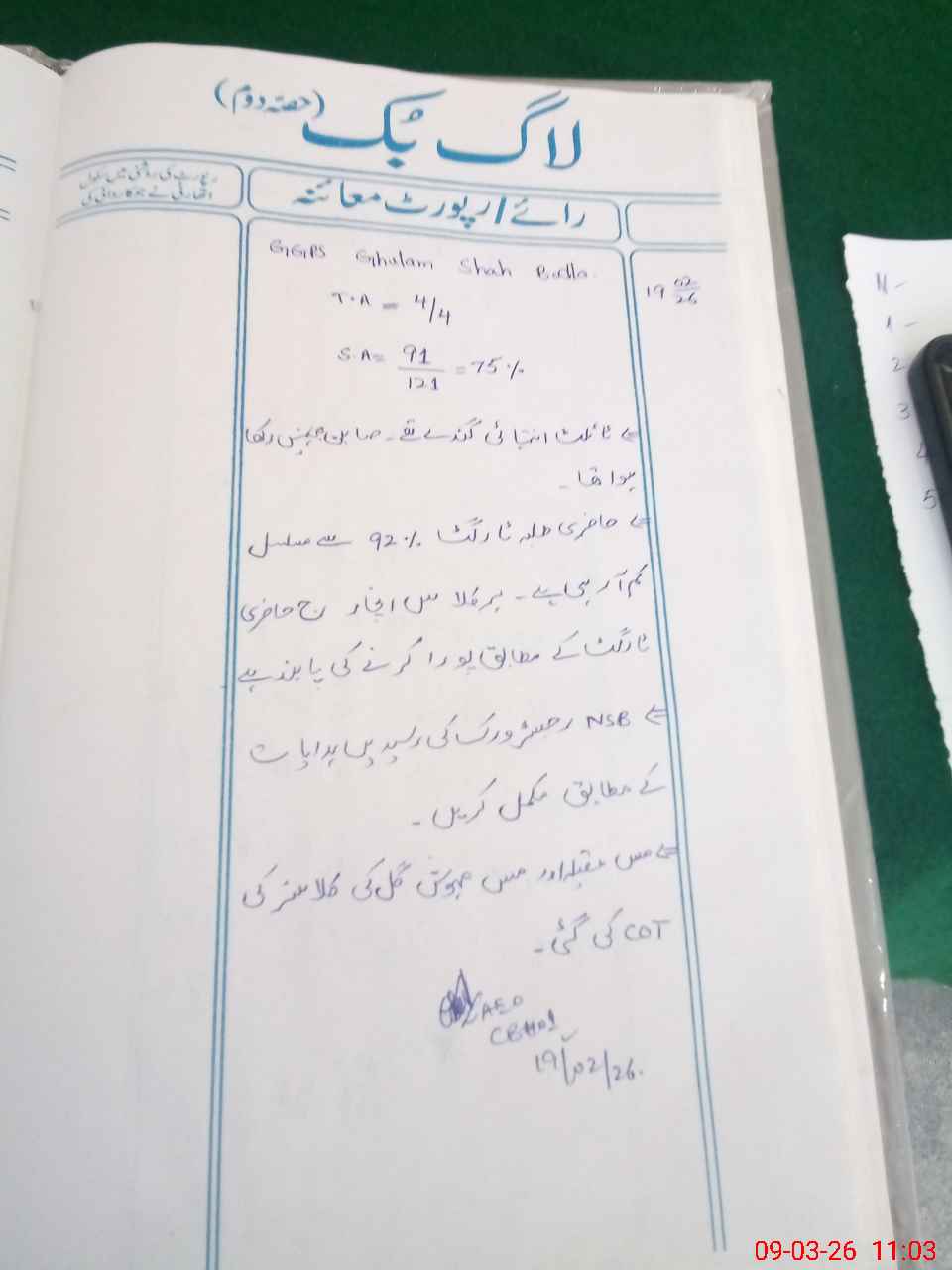 | Certified that this School was Inspected by the Undersigned MEA/DMO Today and the Information Stated Above is as Per Record. | |||||