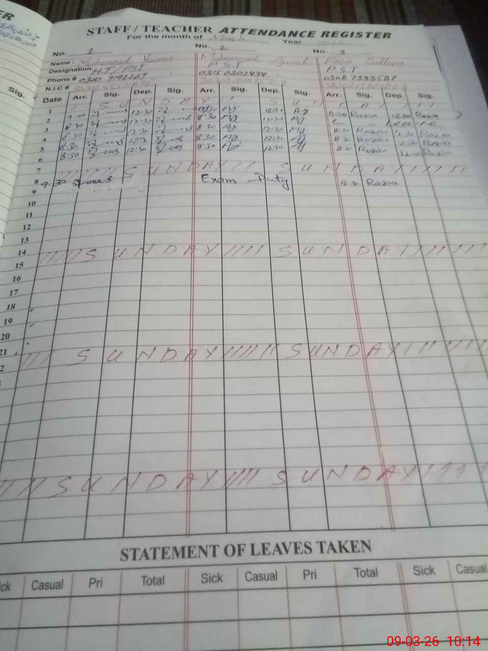 | 36**** | Mu**** Aj**** | PST Arts | Regular | 0 | 0 | 0 | 0 | 0 | 0 | 0 | 0 | 0 | Exam Duty |