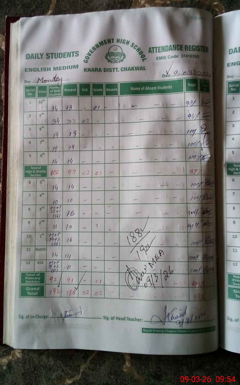 | District: CHAKWAL | Tehsil: CHAKWAL | Markaz: SECONDARY-WING | Level: High | |