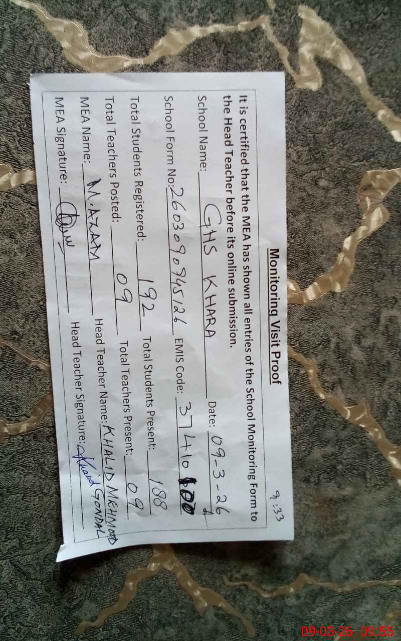 | EMIS Code: 37410100 | Name of School: GHS KHARA | |||