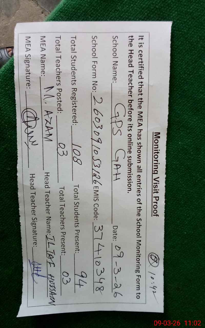 | EMIS Code: 37410348 | Name of School: GPS GAH | |||