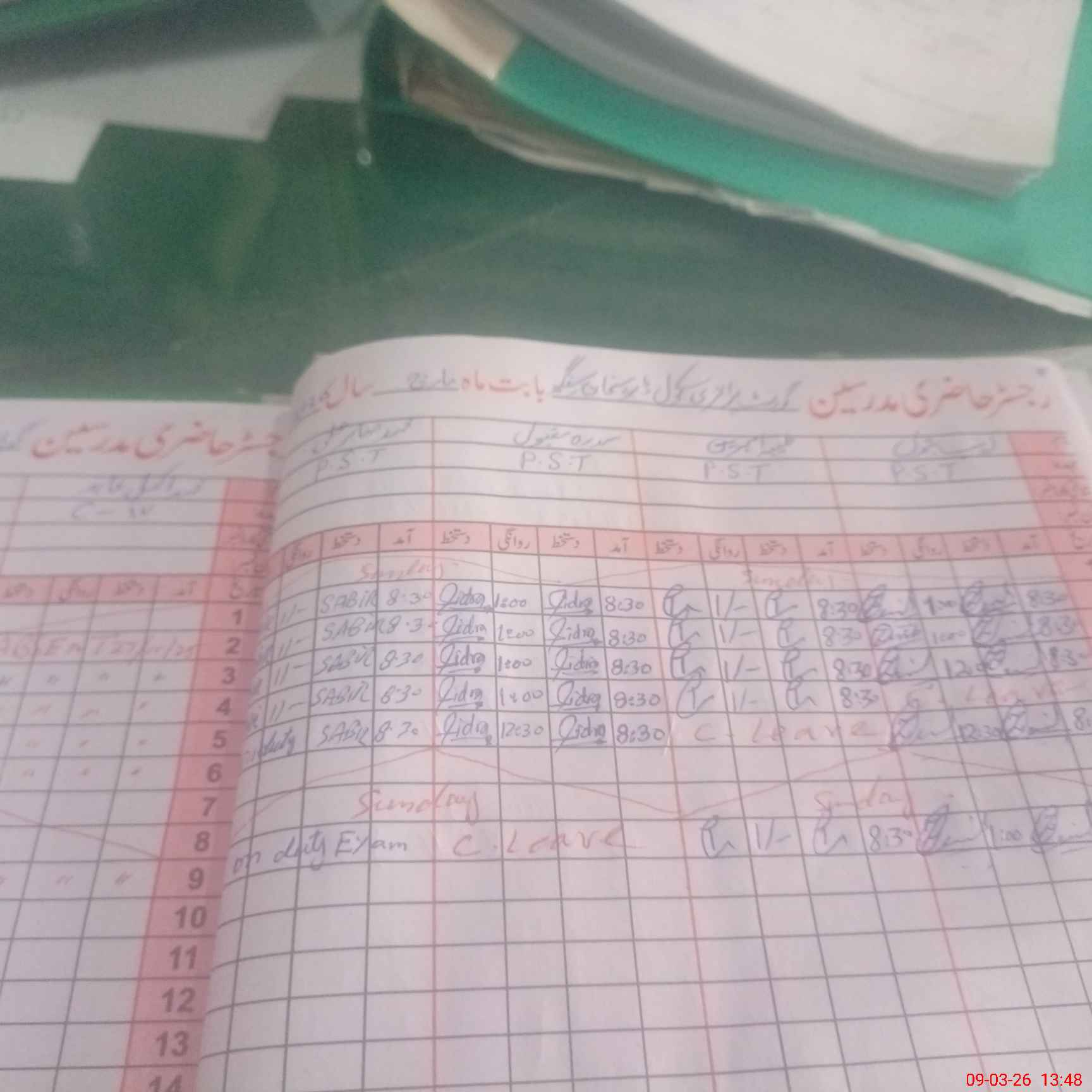 | Leave | Duty | Absent | Maternity | Medical | Ex- Pak |