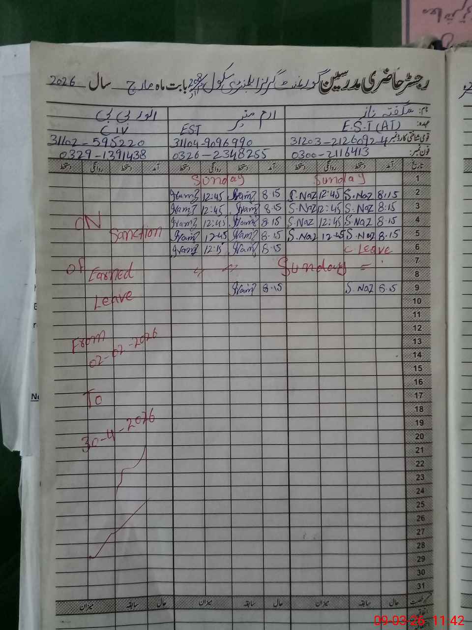 | 31**** | Ar**** Ni**** | EST (Math) | Regular | 0 | 0 | 0 | 0 | 0 | 0 | 0 | 0 | 0 | Absent (Un-Authorized) |