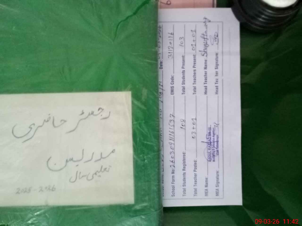 | Attendance Register | Head Teacher | MEA with School | Visit Proof |