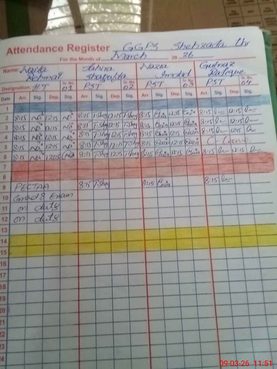 | 42**** | Na**** Re**** | PST Science/Maths | Regular | 1 | 0 | 0 | 0 | 0 | 0 | 0 | 0 | 1 | Exam Duty |