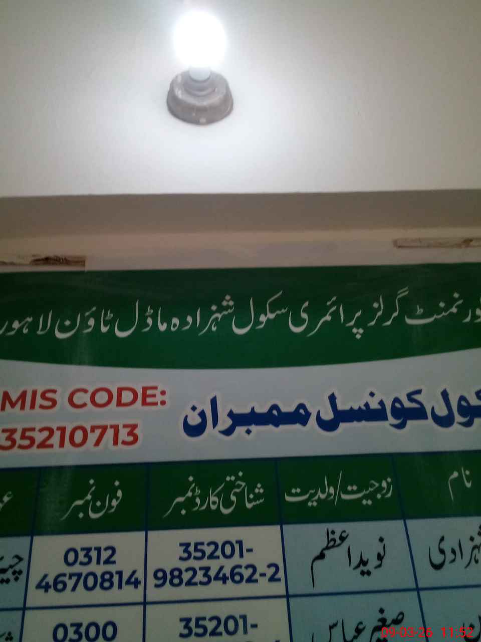 | Name: Na**** Re**** Designation: (School Headmaster's/Headmistress's) Head Mistress Phone/Cell Number: 03**** |