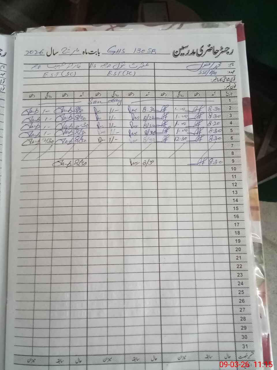| Name: MU**** AF**** Designation: (School Headmaster's/Headmistress's) S.S.T.(Arts) Phone/Cell Number: 03**** |